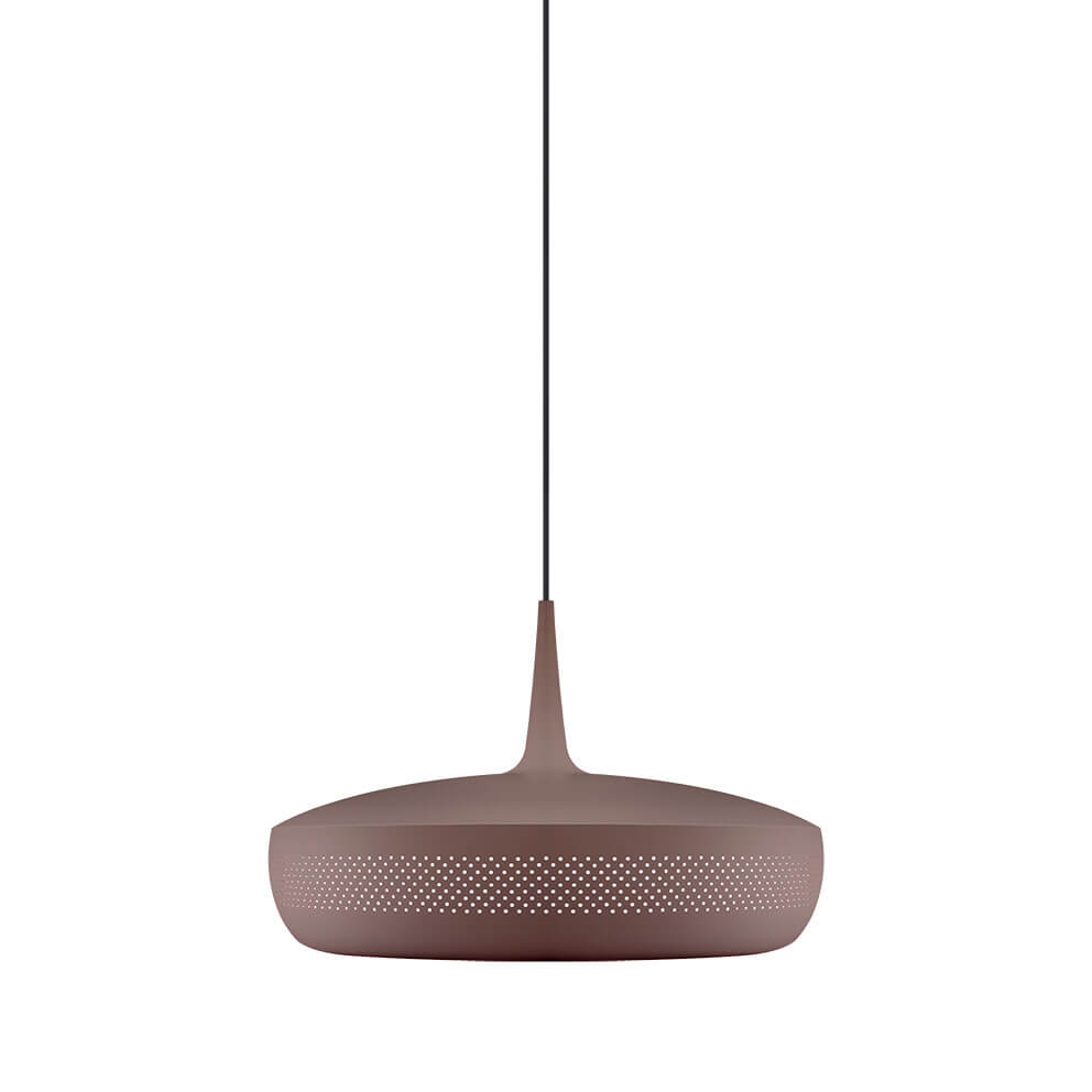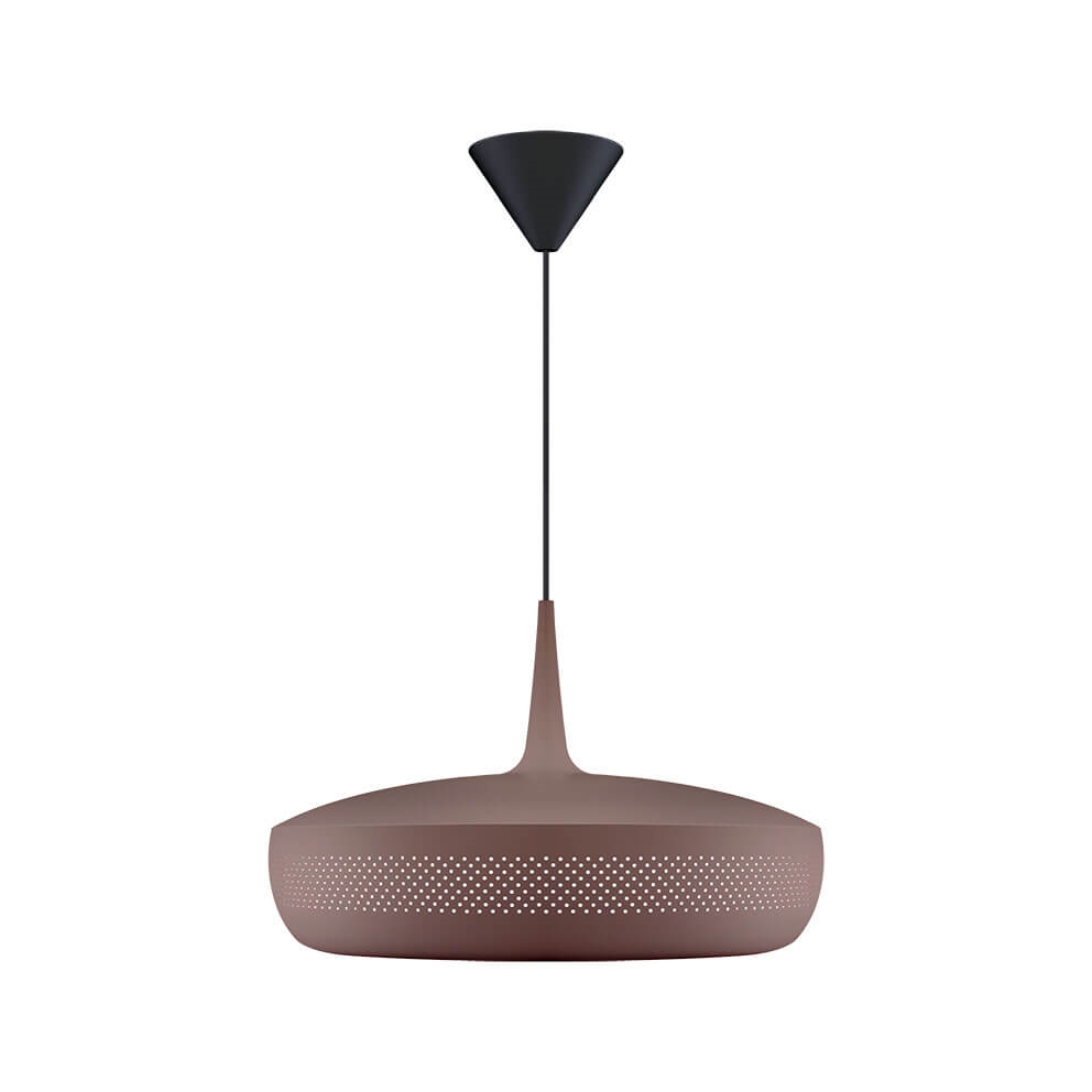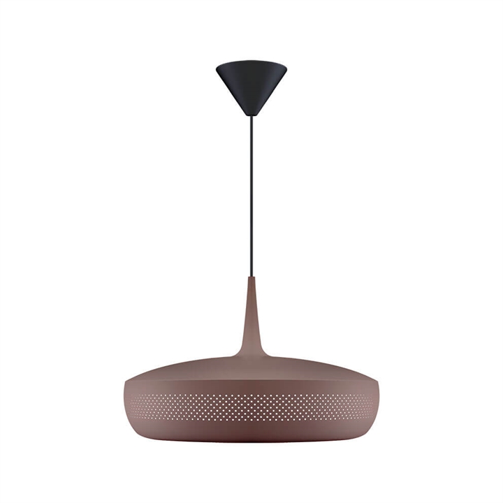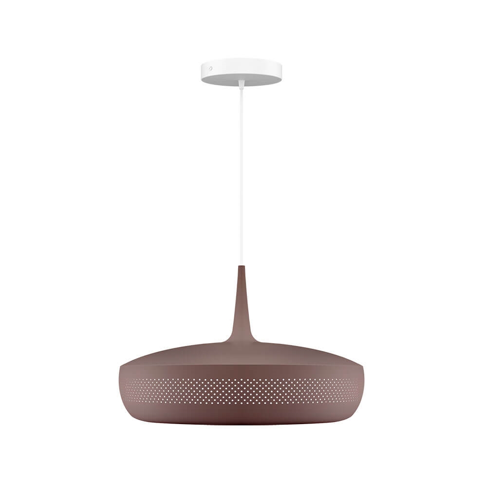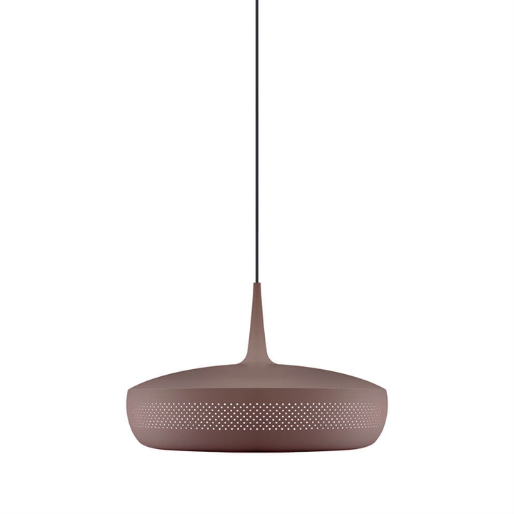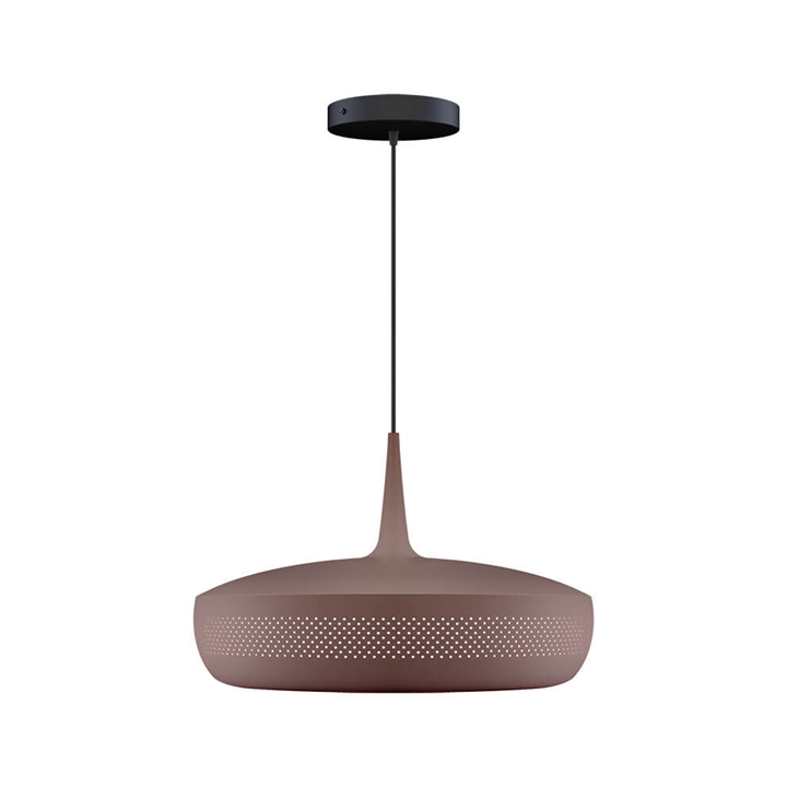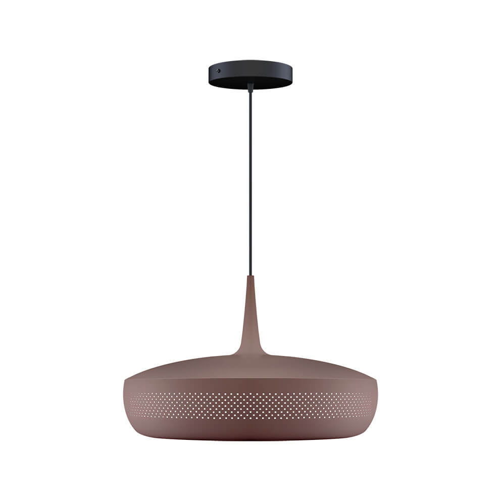 Clava Dine in umberbruin is een lampenkap die een elegante hanglamp vormt met een exclusieve uitstraling wanneer deze wordt gecombineerd met een ophanging. Het heeft een retro-geïnspireerd ontwerp met een reeks kleine symmetrische gaatjes rondom de kap, gemaakt van aluminium. Gebruik bijvoorbeeld de lampenkap als verlichting boven de eettafel of boven de salontafel in de woonkamer.