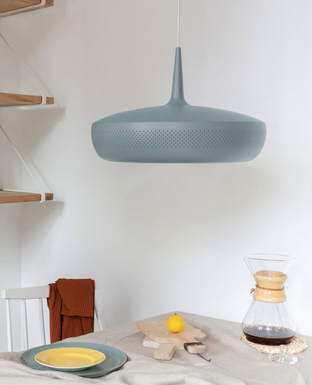 Clava Dine in de kleur leisteen is een lampenkap die een elegante hanglamp vormt met een exclusieve uitstraling wanneer deze wordt gecombineerd met een ophanging. Het heeft een retro-geïnspireerd ontwerp met een reeks kleine symmetrische gaatjes rondom de kap, gemaakt van aluminium. Gebruik bijvoorbeeld de lampenkap als verlichting boven de eettafel of boven de salontafel in de woonkamer.