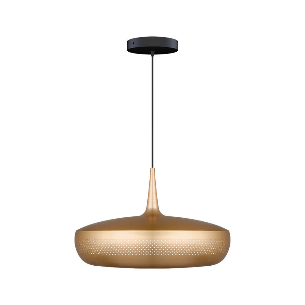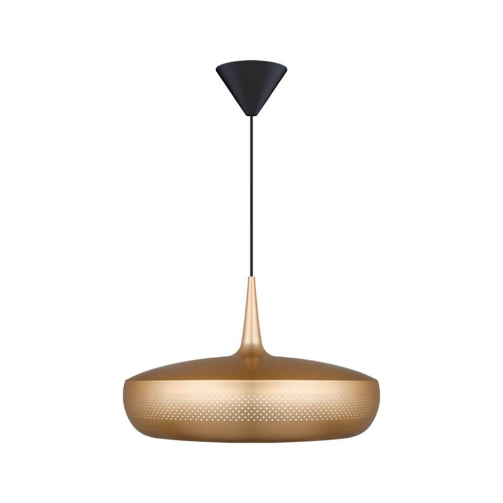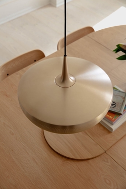 Clava Dine is een lampenkap die een elegante hanglamp vormt met een exclusieve uitstraling wanneer deze wordt gecombineerd met een ophangsysteem. Het heeft een retro-geïnspireerd ontwerp met een reeks kleine symmetrische gaatjes rondom de kap, gemaakt van aluminium. Gebruik bijvoorbeeld de lampenkap als verlichting boven de eettafel of boven de salontafel in de woonkamer.