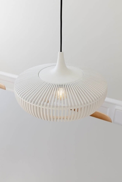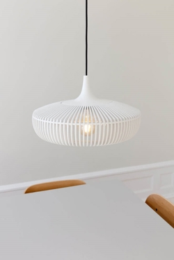 Clava Dine Wood is een lampenkap die prachtige lichtstralen creëert met de lasersnijde houten lamellen die rondom de kap zijn geplaatst. Het elegante ontwerp met de eenvoudige lijnen en een top van massief eiken maakt de lampenkap geschikt voor vele soorten interieurs. Gebruik de kap bijvoorbeeld als een sculpturale hanglamp boven de eettafel of als verfijnde verlichting in de slaapkamer - en laat een houten lamp deel uitmaken van je interieur.