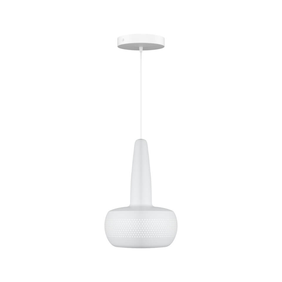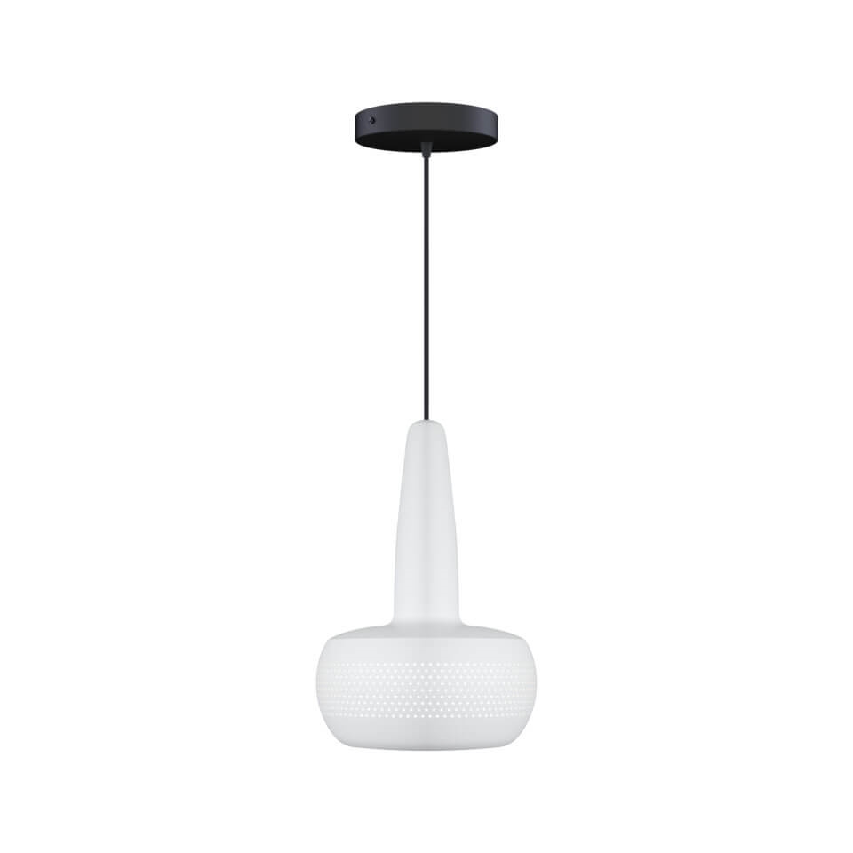 Clava is een lampenkap die een elegante hanglamp vormt wanneer deze wordt gecombineerd met een ophanging. Het heeft een retro-geïnspireerd compact ontwerp met een reeks kleine symmetrische gaten rondom de kap, gemaakt van aluminium. Gebruik de lampenkap bijvoorbeeld als keukenhanglamp, verlichting boven de eettafel of in een mooie cluster in een hoek van de woonkamer.