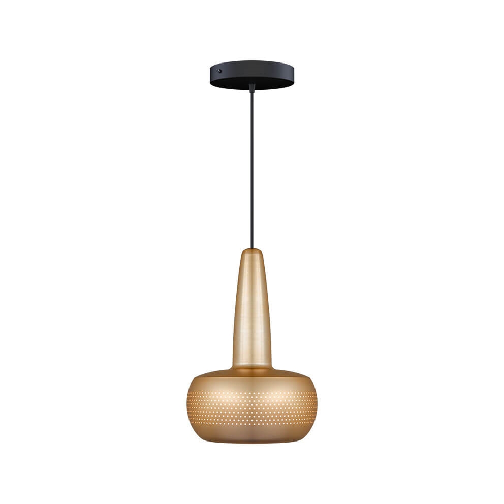 Clava is een lampenkap die een elegante hanglamp vormt wanneer deze wordt gecombineerd met een ophanging. Het heeft een retro-geïnspireerd compact ontwerp met een reeks kleine symmetrische gaatjes rondom de kap, gemaakt van aluminium. Gebruik de lampenkap bijvoorbeeld als keukenhanglamp, verlichting boven de eettafel of in een mooie cluster in een hoek van de woonkamer.