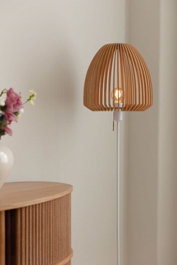 Clava Wood is een lampenkap die prachtige lichtstralen creëert met de lasersnijde houten lamellen die rondom de kap zijn geplaatst. Het elegante ontwerp met de eenvoudige lijnen maakt de lampenkap geschikt voor vele soorten interieurs. Combineer de kap bijvoorbeeld met een ophanging voor een sculpturale hanglamp boven de eettafel of verfijnde verlichting in de slaapkamer of creëer een prachtige vloerlamp in de woonkamer samen met een lampenstandaard van Umage.