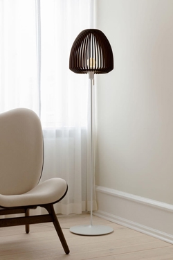 Clava Wood is een lampenkap die prachtige lichtstralen creëert met de laser gesneden houten lamellen die rondom de kap zijn geplaatst. Het elegante ontwerp met de eenvoudige lijnen maakt de lampenkap geschikt voor veel soorten interieurs. Combineer de kap bijvoorbeeld met een ophanging voor een sculpturale hanglamp boven de eettafel of verfijnde verlichting in de slaapkamer of creëer een mooie vloerlamp in de woonkamer samen met een lampenstandaard van Umage.