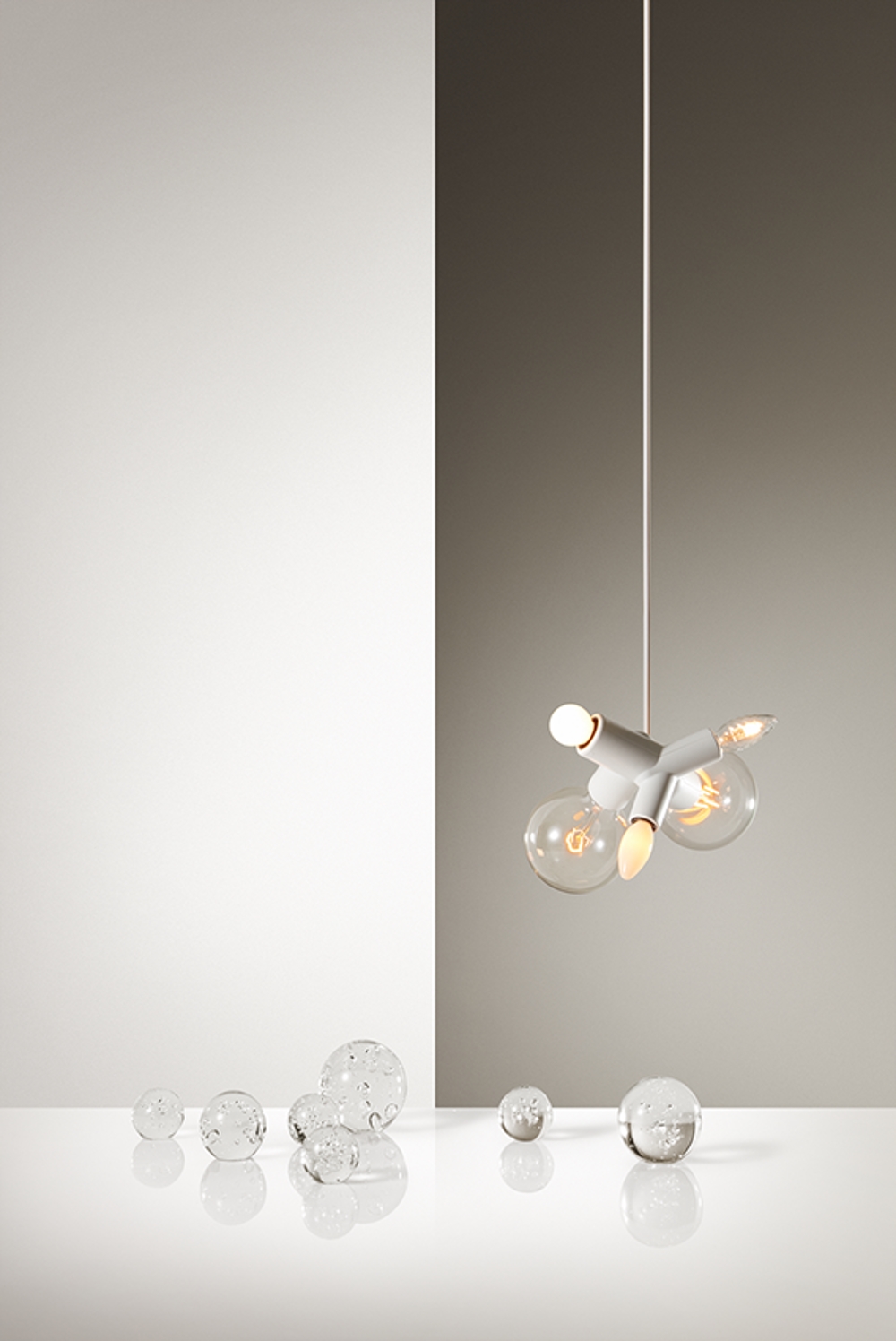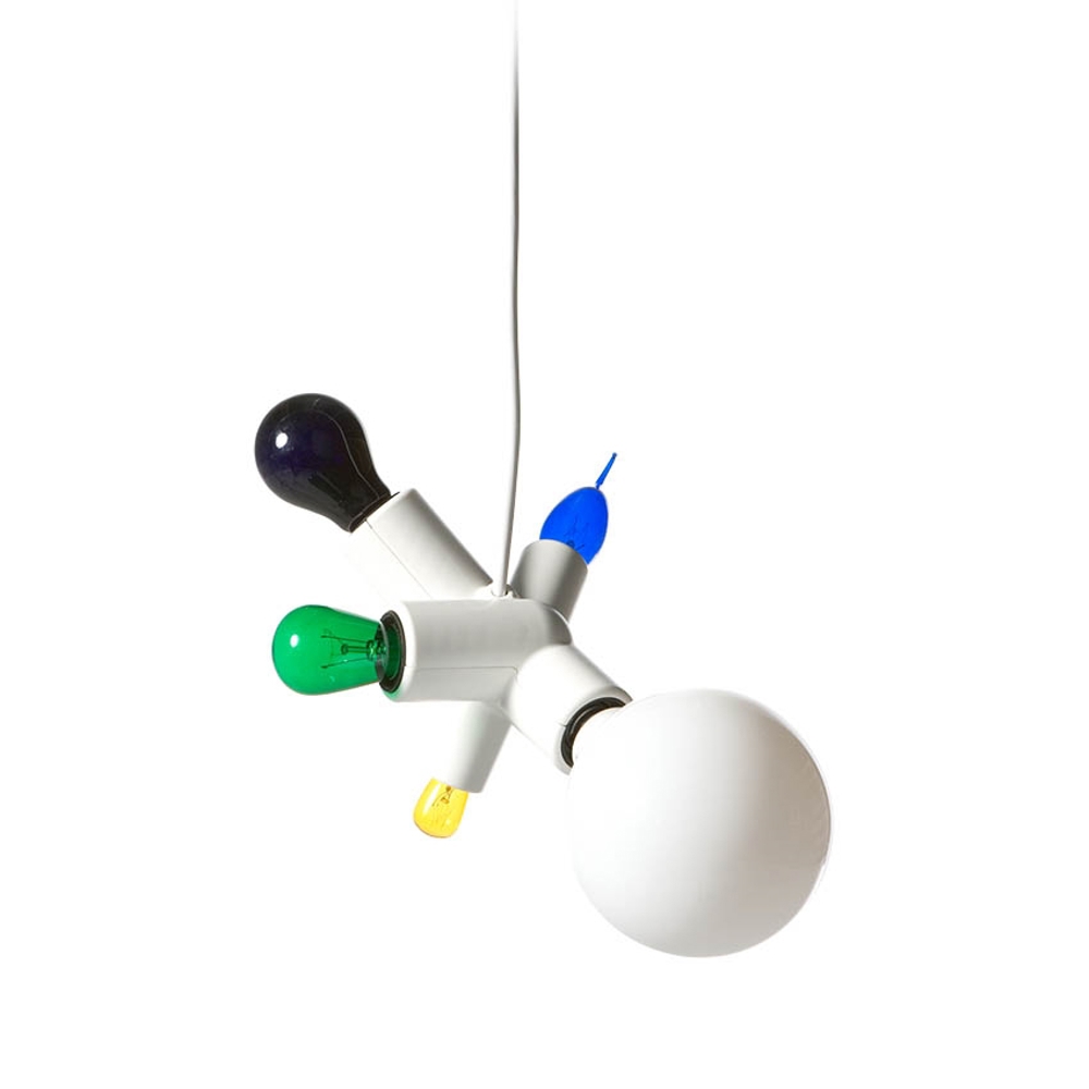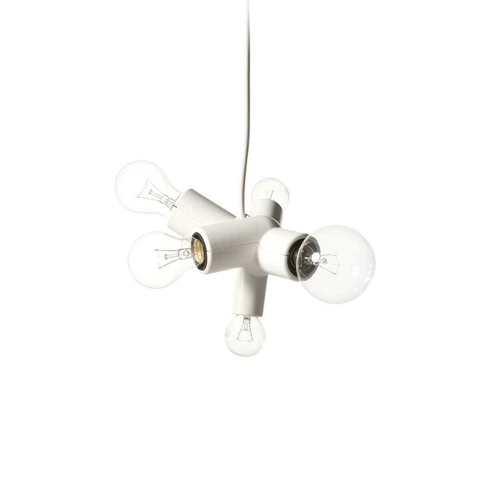 Cluster Lamp is een eenvoudige hanglamp met ruimte voor vijf lichtbronnen – en welke dat zijn, is aan jou.