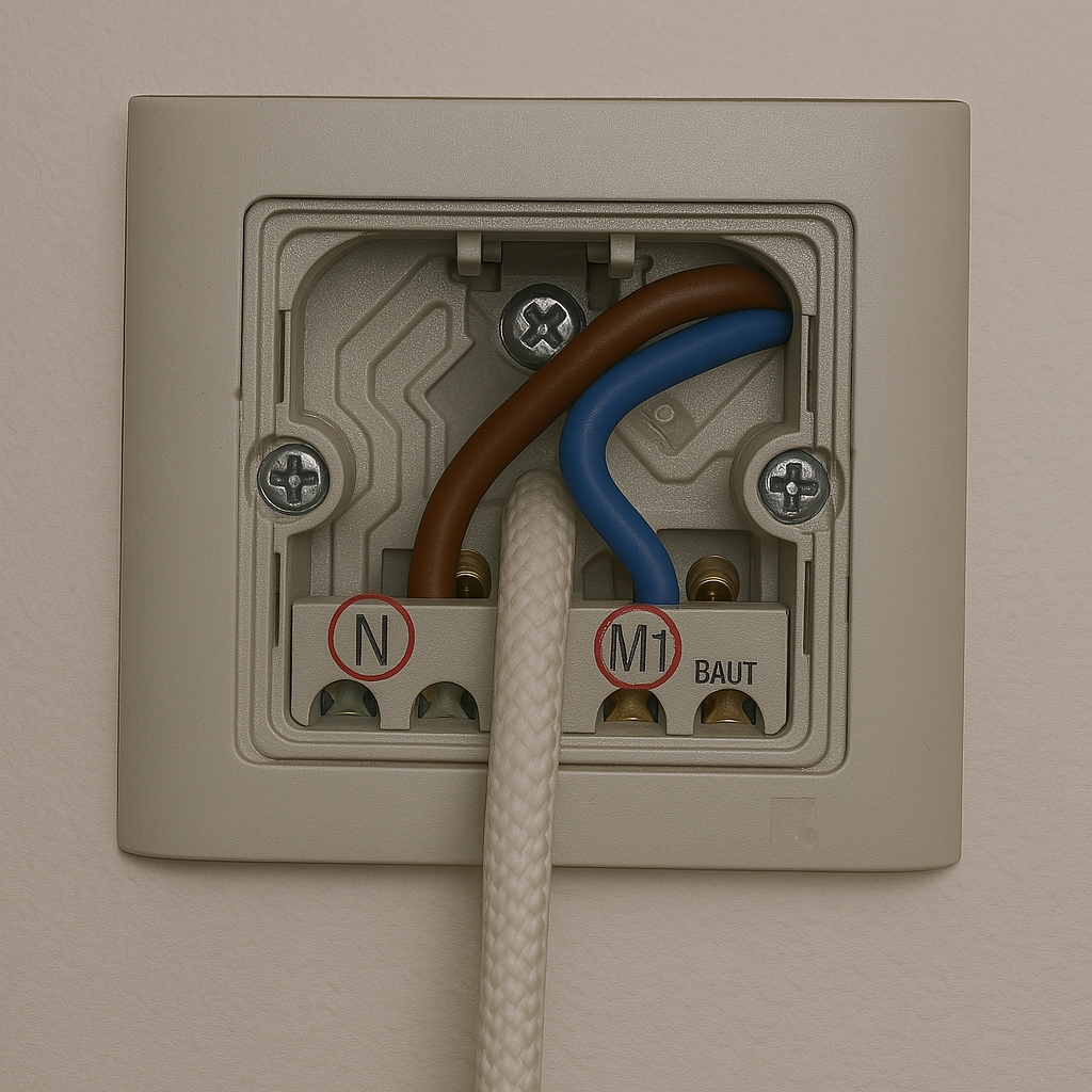 Als er een derde groen/gele draad is, moet deze op de aarde (symbool tussen L en M1) worden aangesloten.