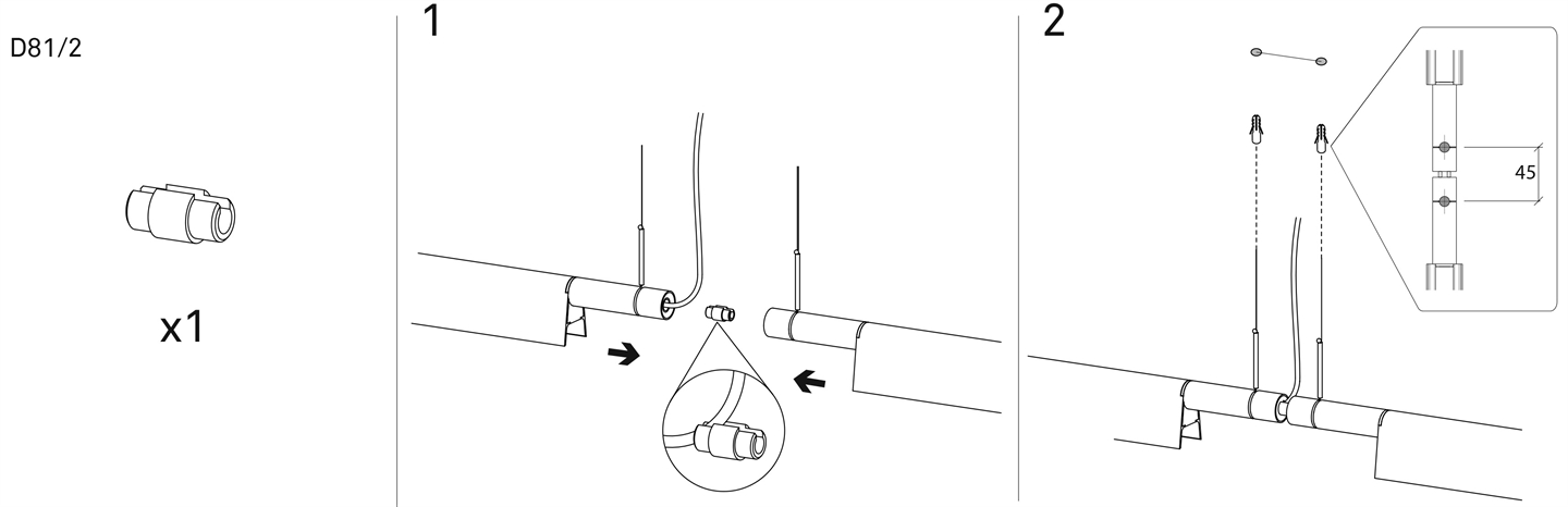Accessoire voor lineaire mechanische verbinding (180°) van twee Compendium hanglampen