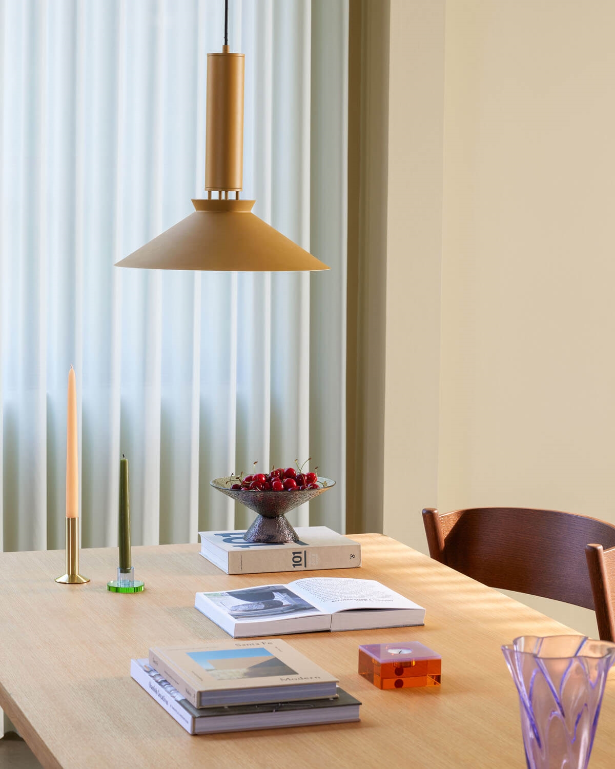 De mosterdkleurige hanglamp Coney straalt zowel warmte als elegantie uit en heeft een retro-geïnspireerde uitstraling die doet denken aan de jaren zeventig. De eenvoudige, conische kap geeft een zacht licht en maakt de hanglamp ideaal om een gezellige sfeer in de ruimte te creëren.