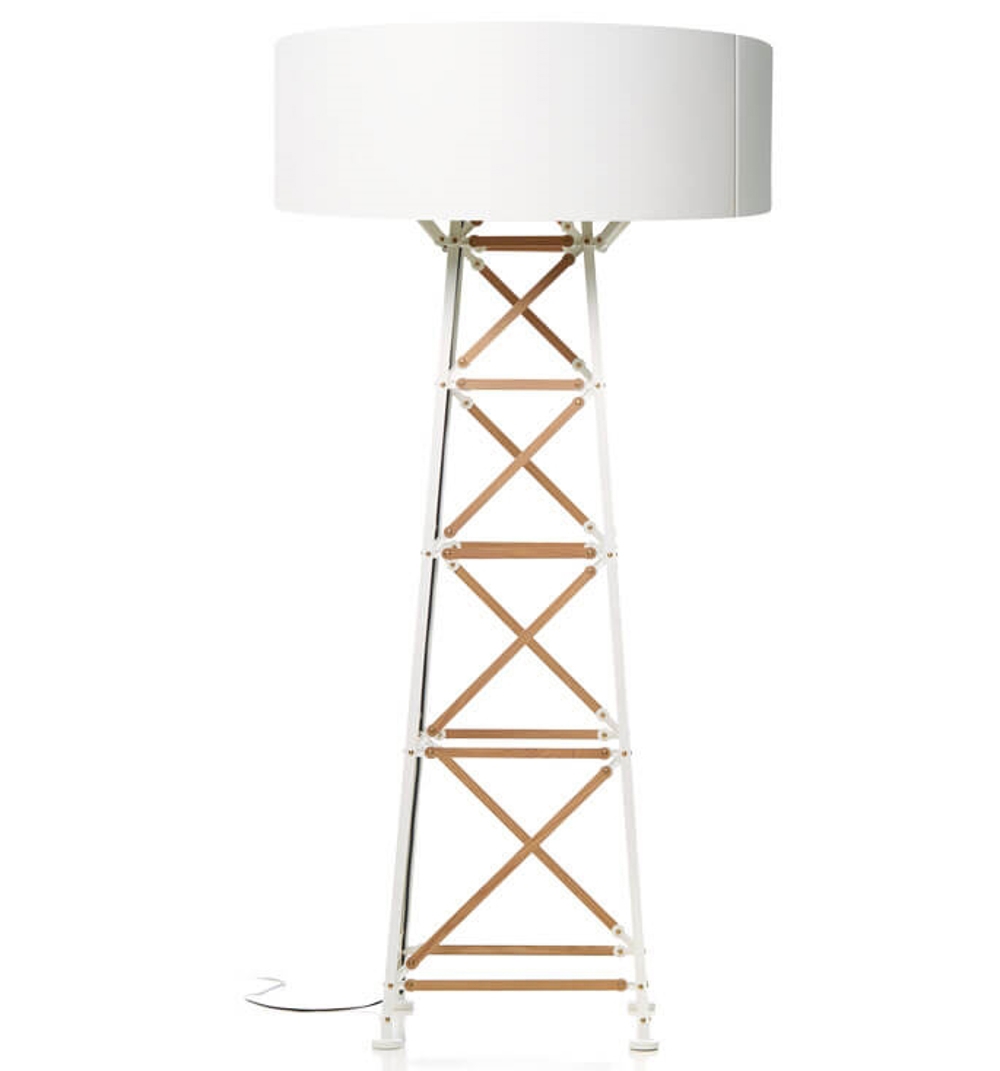 Construction vloerlamp Large, wit/hout