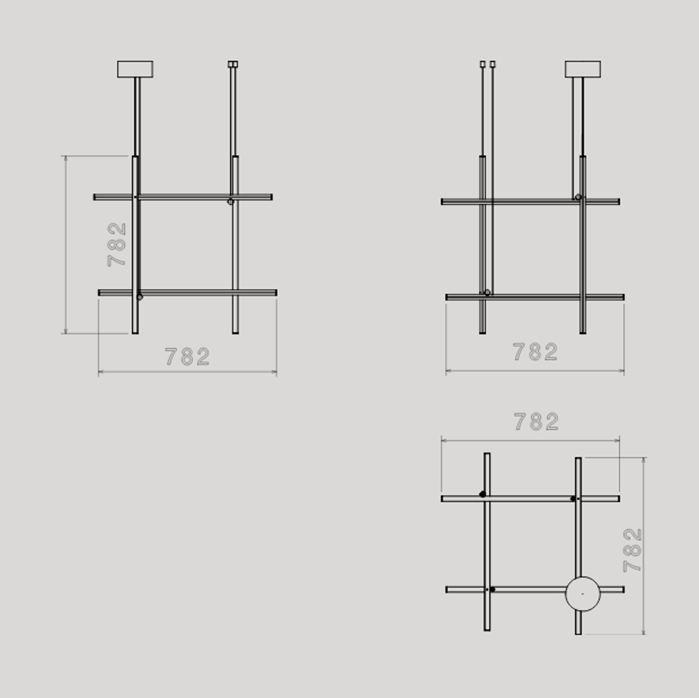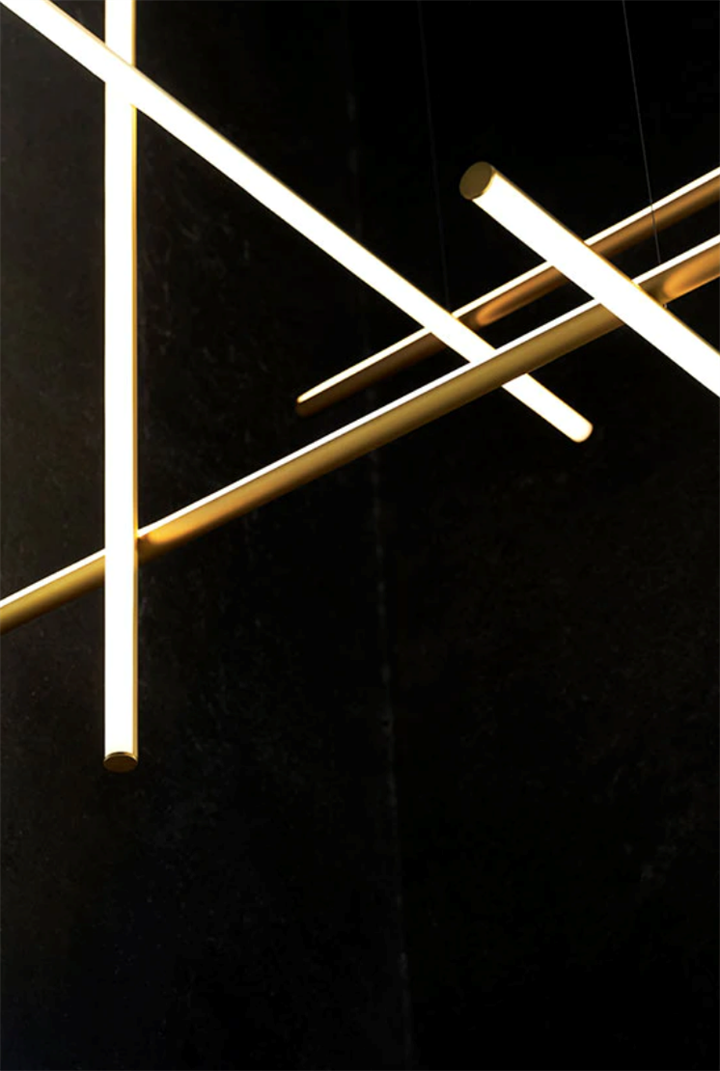 Elk element is gemaakt van geëxtrudeerd geanodiseerd aluminium met een champagne afwerking en een diffuser in platina optisch siliconen met een geïntegreerde LED-strip (CRI 95). Elk element wordt aangedreven en ondersteund door een onzichtbare elektrische en mechanische verbinding die speciaal is ontworpen om de samenstelling van de 3 plafondmodellen (C1 - C2 - C4) mogelijk te maken, die kunnen worden gecombineerd met de respectieve lange versies voor de hoogste plafonds (C1 Long, C2 Lang, C4 Lang). Het 'C-module' is ook beschikbaar.