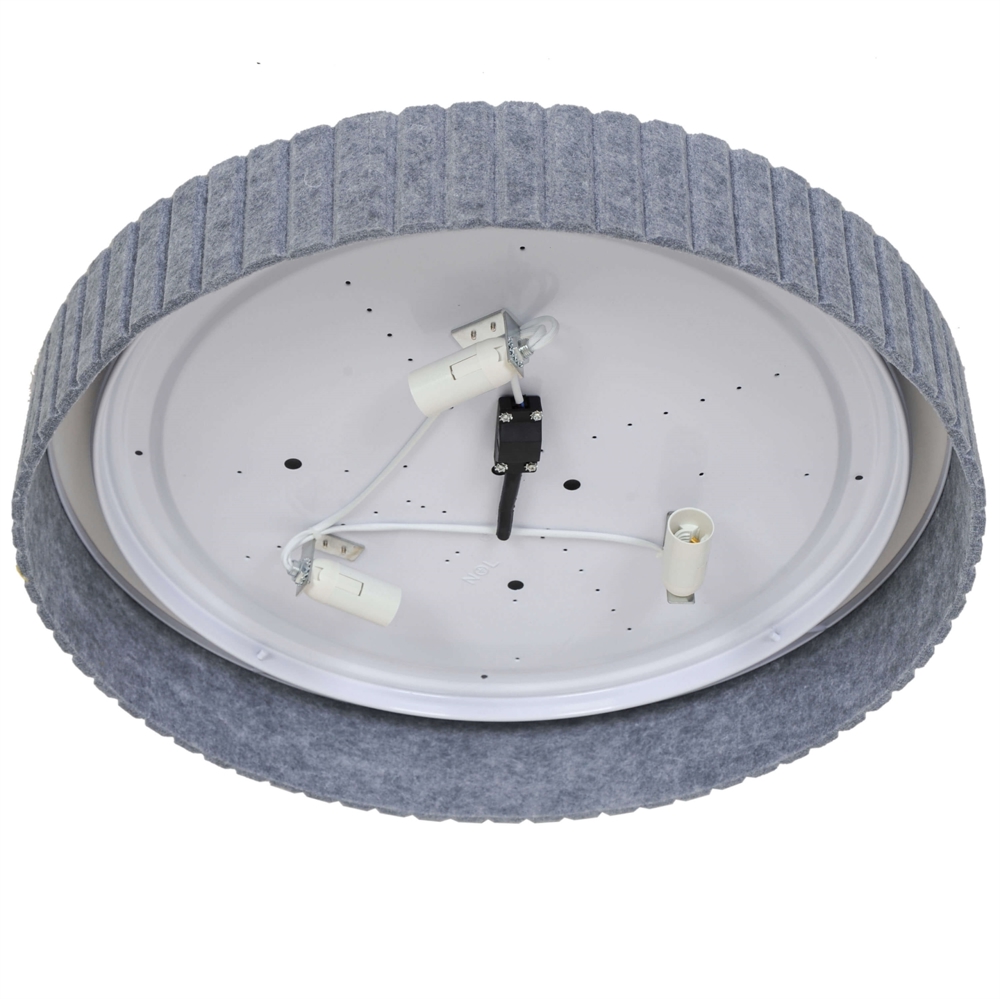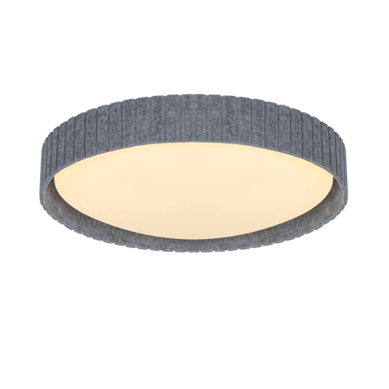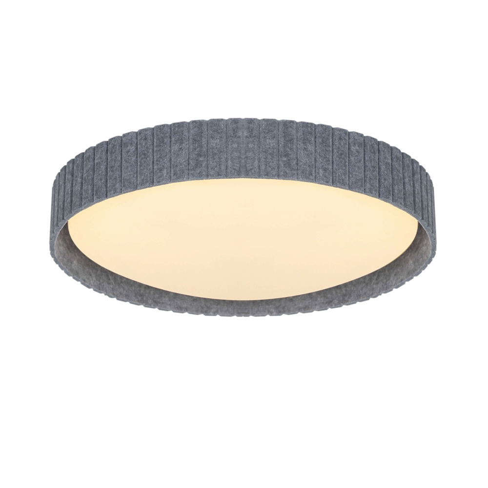 De plafondlamp Corato is verkrijgbaar in twee maten met kappen van kunststof omgeven door grijs vilt, wat de lampen een decoratieve en zachte uitstraling geeft. Een elegante plafondlamp in een klassieke vorm met een onconventionele afwerking. Biedt een zacht en aangenaam indirect licht.
