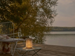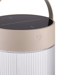 De lamp is een moderne kijk op de traditionele buitenlantaarn en wordt opgeladen via zonlicht of met de meegeleverde USB-kabel voor snelle oplading. Hij heeft een geïntegreerde schakelaar en is dimbaar in drie stappen met Moodmaker™, zodat de lichtsterkte kan worden aangepast aan de gewenste sfeer. Op volle sterkte brandt de lamp 4 uur, op middelste sterkte 6 uur en op laagste sterkte 12 uur.