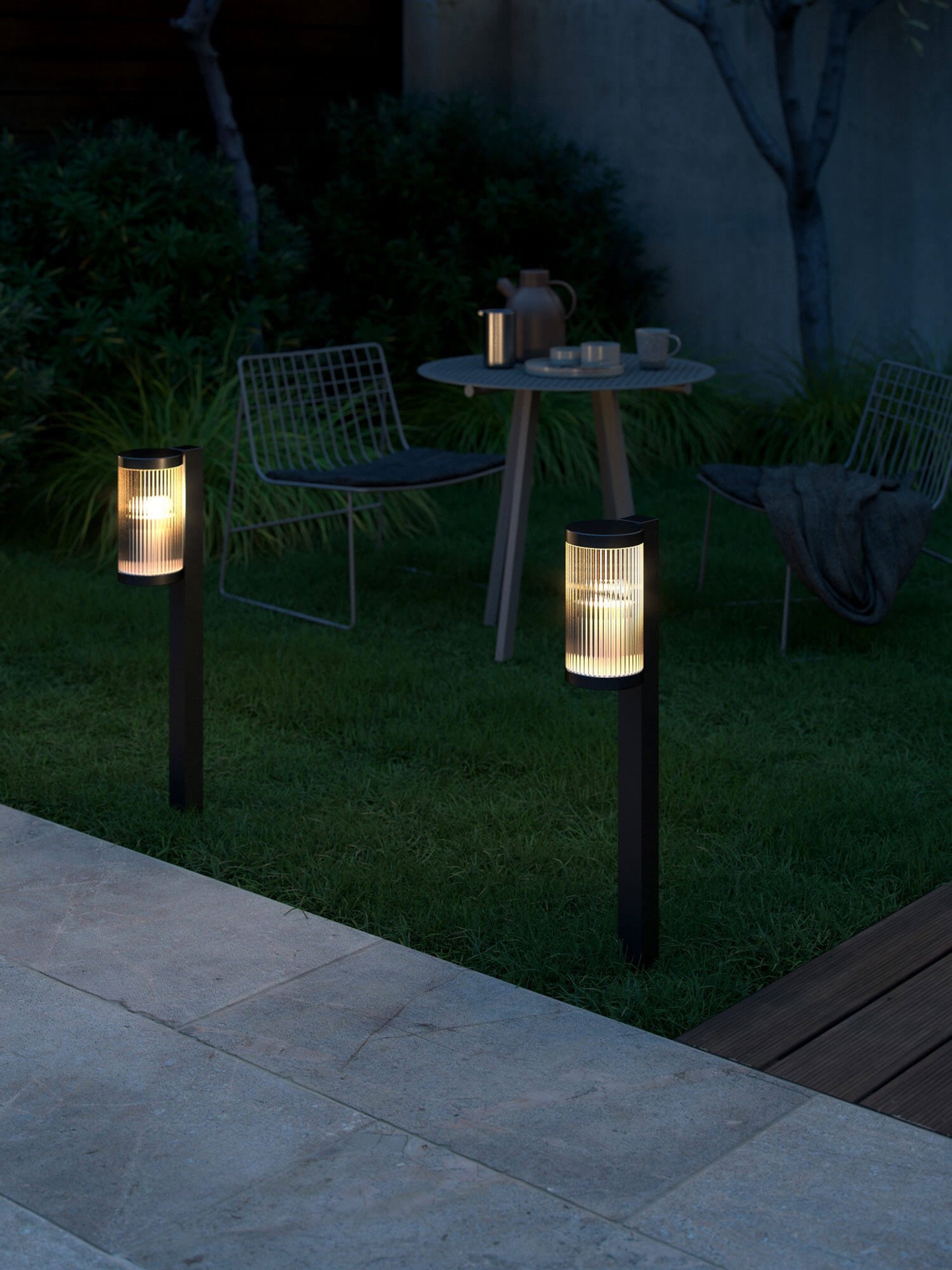 De tuinlamp kan eenvoudig worden gemonteerd met de meegeleverde spies of met een basis voor tuinlampen, die apart moet worden gekocht. De lampen kunnen parallel worden aangesloten.