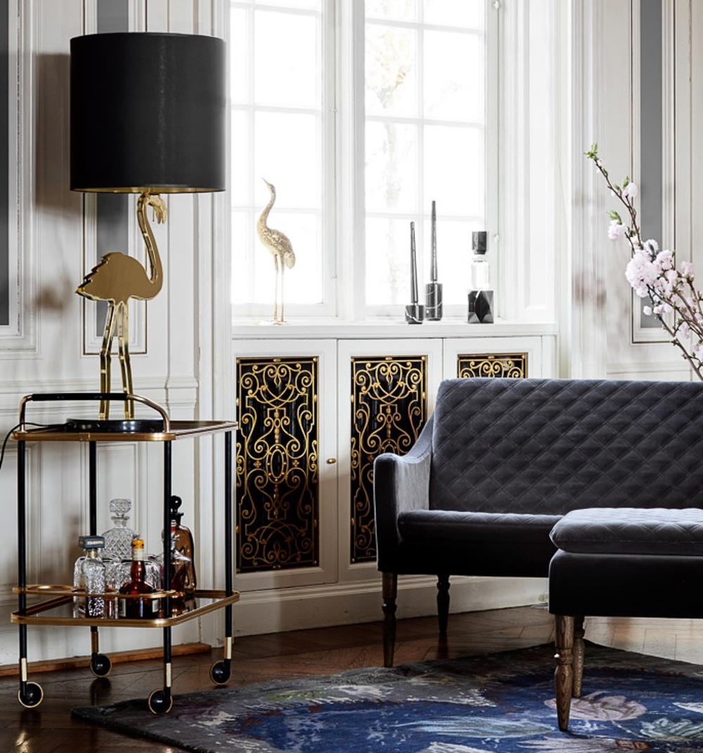 Een leuke en unieke vloerlamp of tafellamp om een ander accent in huis te creëren. Crazy Flamingo vloerlamp/tafellamp is gemaakt van messing en heeft een voet van zwart marmer, een stoffen kap en een stoffen snoer van 1,9 meter.
