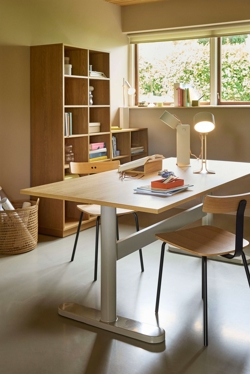 De tafellamp Crea heeft een compact ontwerp met een opvallende kleurencombinatie van een zandkleurige basis en een oranje stoffen snoer. De kap is verstelbaar en de geïntegreerde LED-lichtbron is dimbaar, zodat het licht aan de situatie kan worden aangepast.