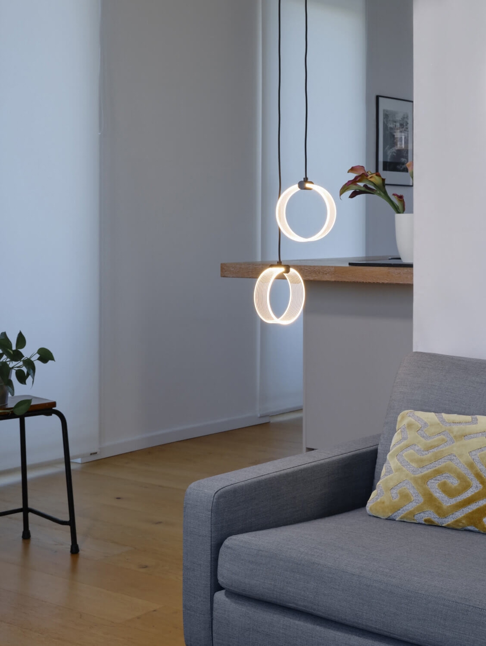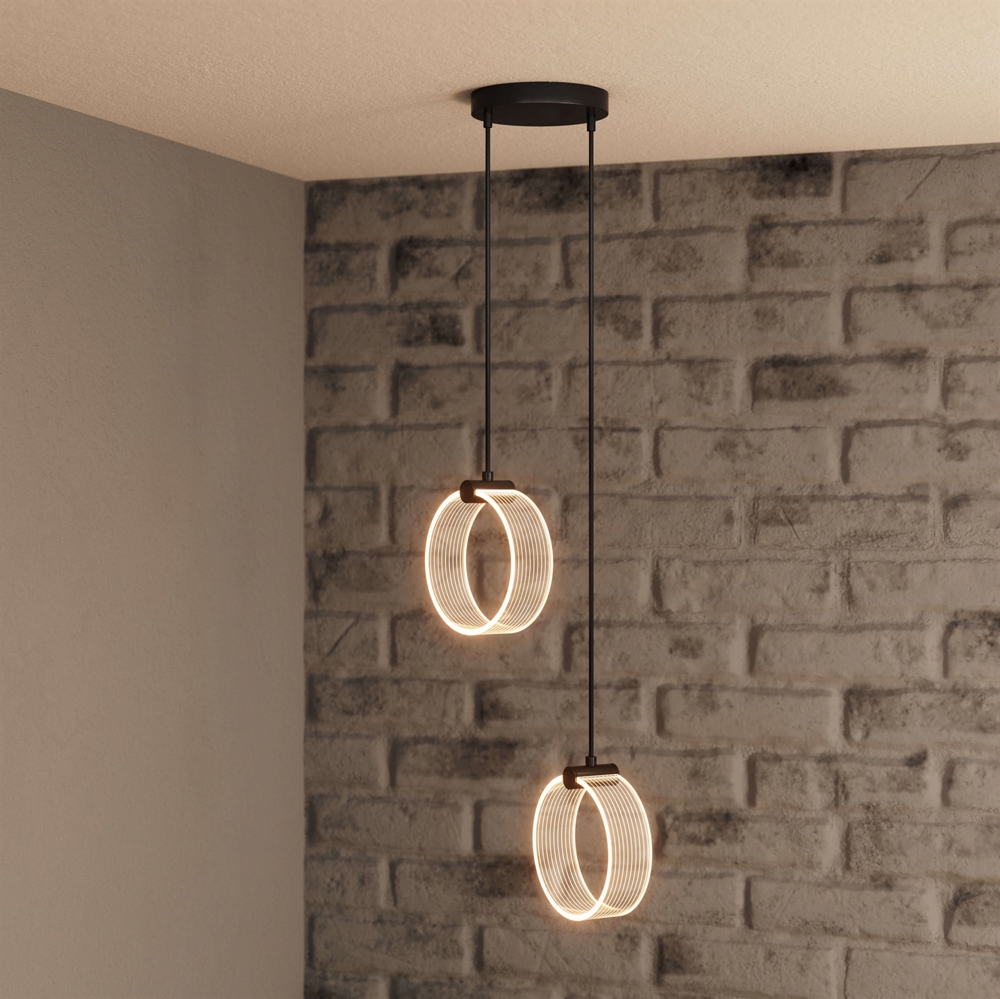 Decor Circle 2, gemaakt van duurzaam acryl en metaal, is geschikt voor woon- of slaapkamers en als verlichting in de hal en gang of bij een trap. De verfijnde hanglamp is eenvoudig te monteren.