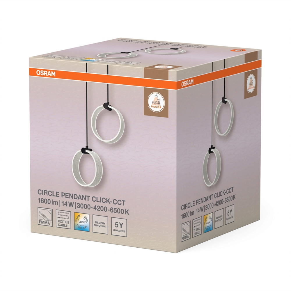 Osram Decor Circle 2 hanglamp met CCT en 2 lampenkappen, zwart/helder