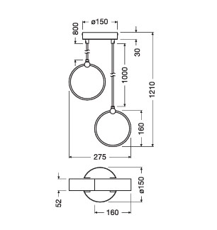 Maximale hoogte vanaf plafond: 121 cm
