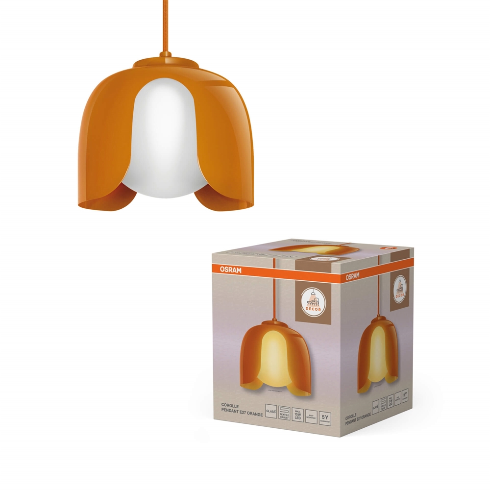 De hanglamp Decor Corolle in staal en glas is een verfijnde toevoeging aan het interieur met zijn opvallende kleur. Het elegante retrodesign kan goed gecombineerd worden met andere lampen in de Decor Corolle-serie om een geheel in het interieur te creëren. Een uitstekende keuze als verlichting voor de hal, gang en trap of voor de keuken, woonkamer en slaapkamer.