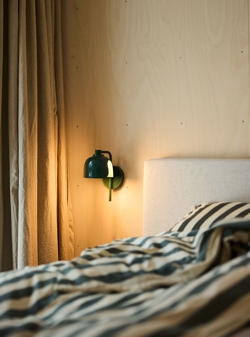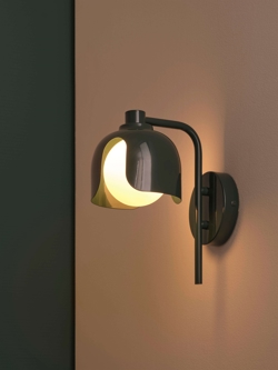 De wandlamp is verkrijgbaar in meerdere kleuren en wordt hardwired direct op de lampaansluiting gemonteerd.
