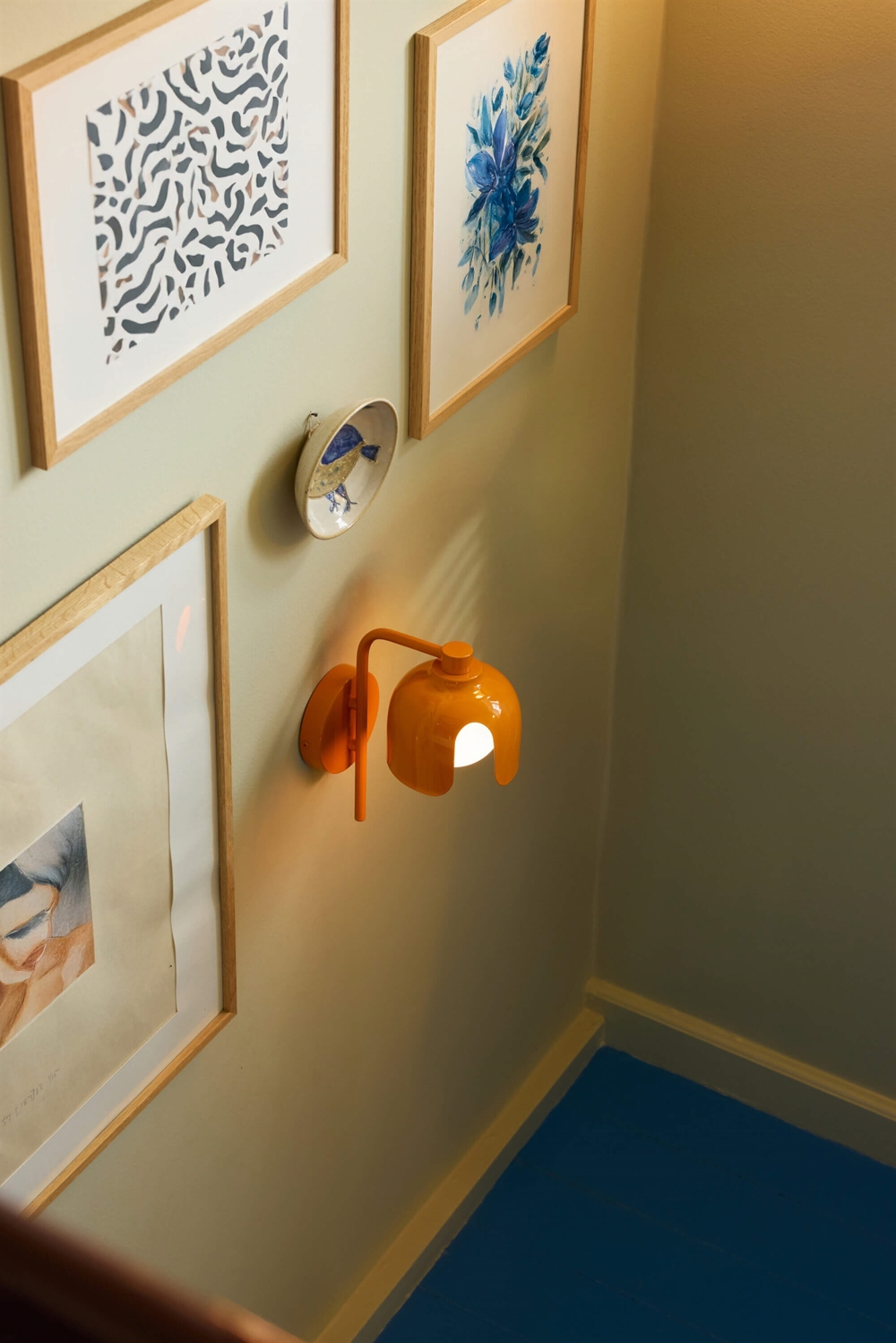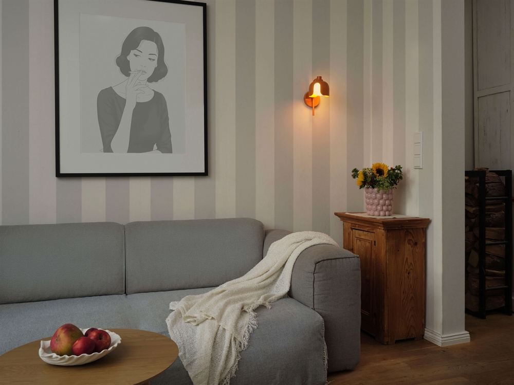 De wandlamp is verkrijgbaar in meerdere kleuren en wordt hardwired direct op de lampaansluiting gemonteerd.
