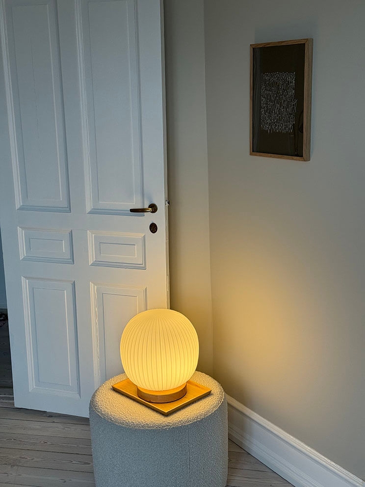 Maten: H24,5 x D21 cm, kap: Ø13,5 x H10,5 cm