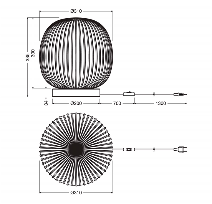 Maten: H24,5 x D21 cm, kap: Ø13,5 x H10,5 cm