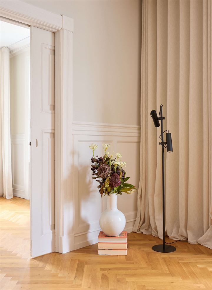 De vloerlamp kan goed worden gecombineerd met andere lampen in de Decor Drums-serie om een geheel in het interieur te creëren.