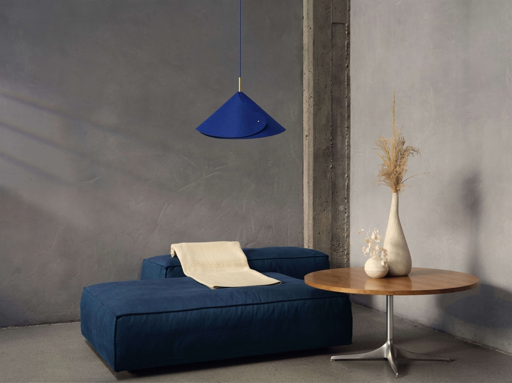 De decoratieve hanglamp Decor Flip in vilt is met het slimme ontwerp en de blauwe kleur een opvallende toevoeging aan het interieur. De hanglamp creëert een warme sfeer en is een goede keuze als verlichting boven de eettafel of als lamp voor de woonkamer, slaapkamer of hal. Kan goed gecombineerd worden met andere lampen in de Decor Flip-serie om een geheel in het interieur te creëren.