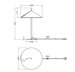 Maten: H40 x D20 cm, basis: Ø15 cm, kap: Ø35 x H52 cm