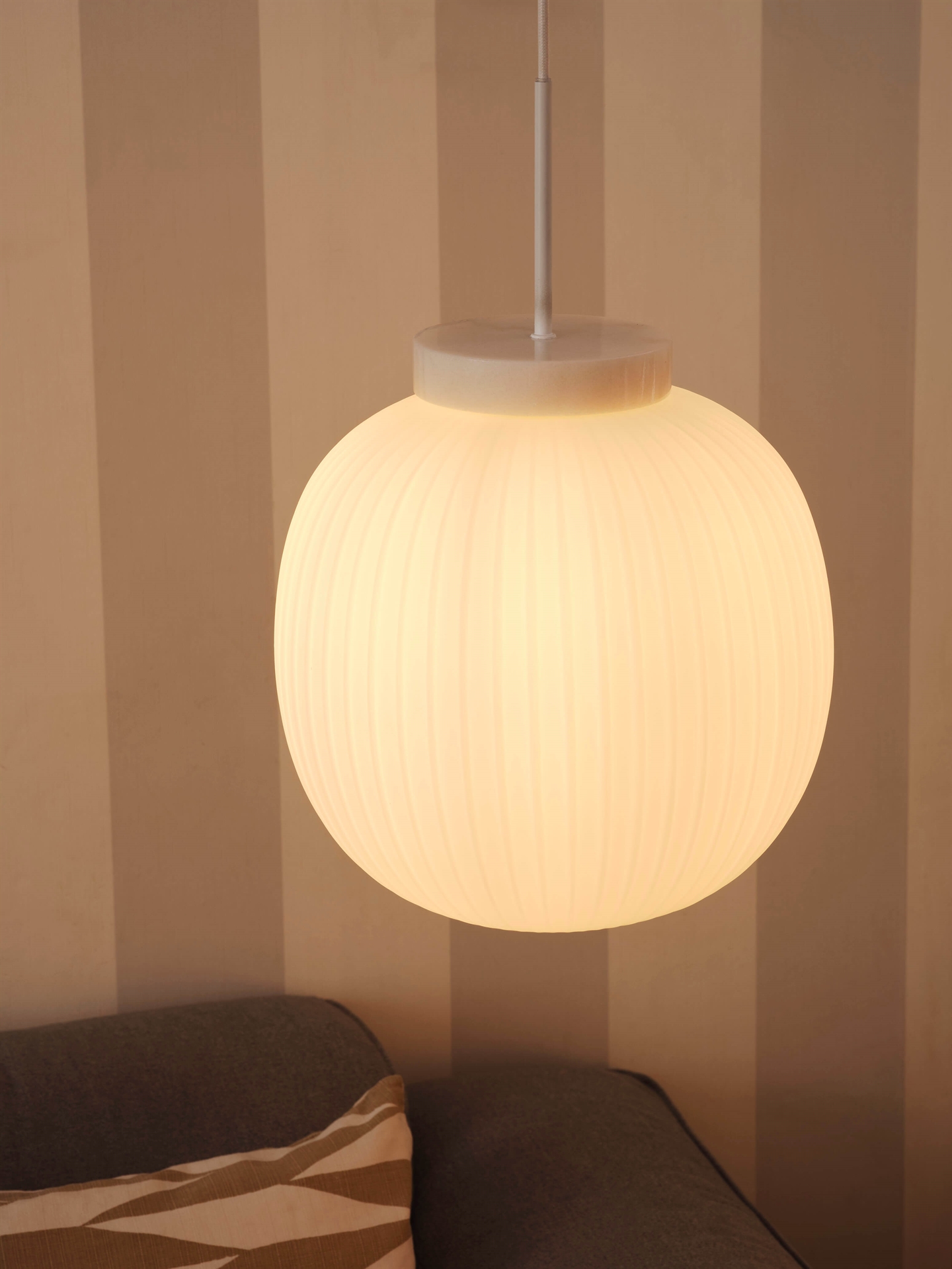 De hanglamp Decor Glass Lantern met glazen kap en marmeren top heeft een modern minimalistisch design met een tijdloze uitstraling. De elegante lamp kan goed gecombineerd worden met de bijpassende tafellamp in de lampenserie. De serie omvat ook een variant van de hanglamp met een top van rubberhout. Een uitstekende keuze als keukenhanglamp, verlichting boven de eettafel of lamp in de slaapkamer.