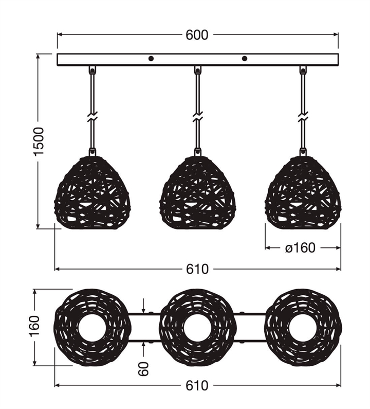 Maximale hoogte vanaf plafond: 150 cm
