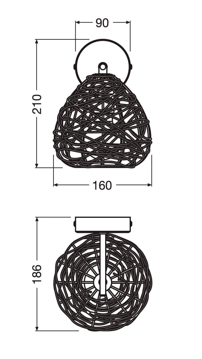 Afmetingen: H21 x D18,6 cm, kap: Ø16 cm, basis: Ø9 cm