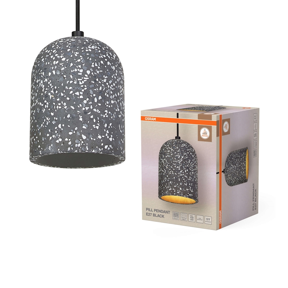 De hanglamp Decor Pill in metaal en terrazzo is een uitstekende keuze als keukenlamp of verlichting boven de eettafel en hangt mooi alleen of meerdere samen in een rij of groep. De stijlvolle lamp is ook een goede keuze voor een hal of trappenhuis en is uitgerust met een E27-fitting, waardoor het mogelijk is om een energiezuinige LED-lichtbron in veel verschillende lichtsterktes te kiezen.