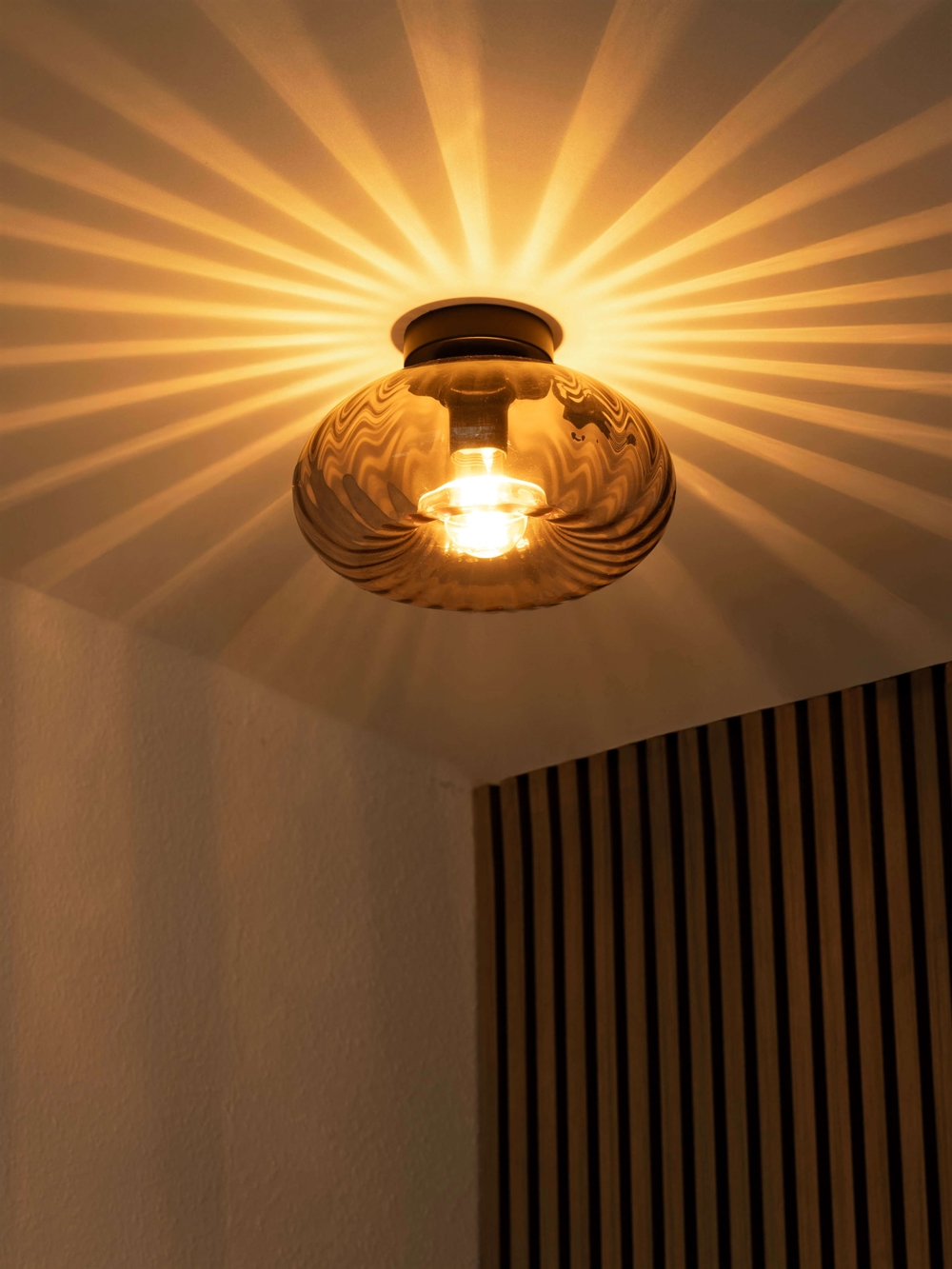Deze variant van Decor Smoke Glass kan zowel als wandlamp als plafondlamp worden gemonteerd en combineert elegant modern design met een warme en sfeervolle verlichting. Het karakteristieke rookglas van de lamp creëert een zacht en aangenaam licht, dat de ruimte een exclusieve en uitnodigende uitstraling geeft.