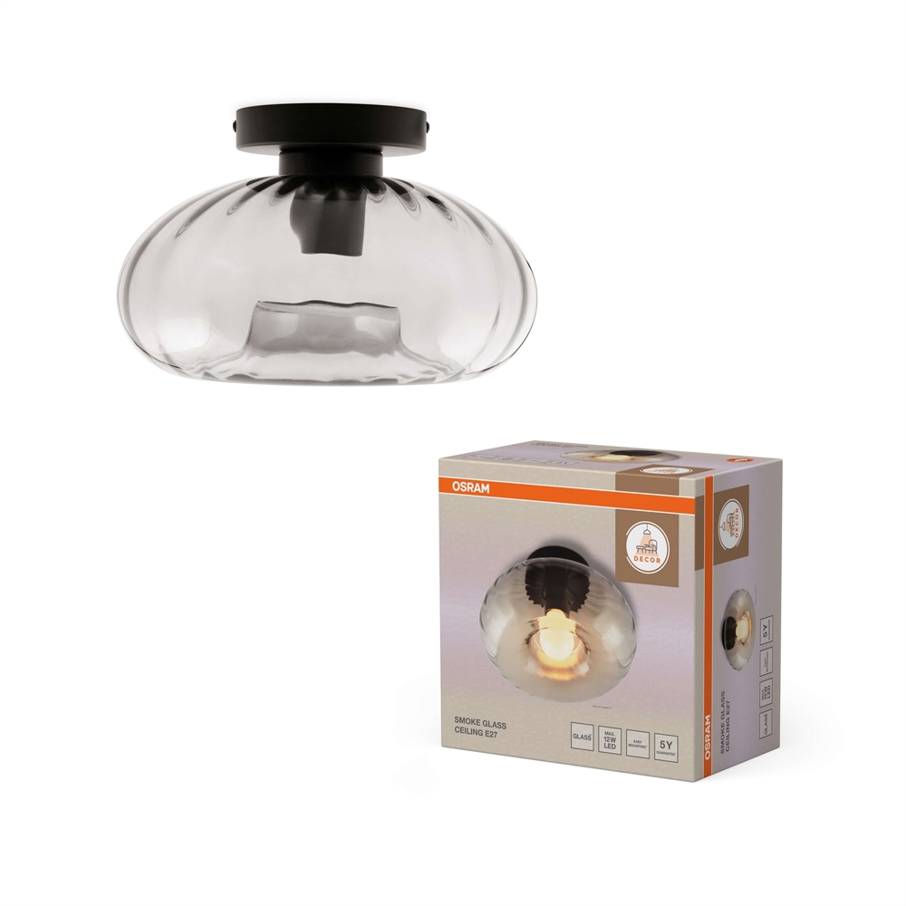 Osram Decor Smoke Glass wandlamp/plafondlamp met rookglas kap en zwarte basis