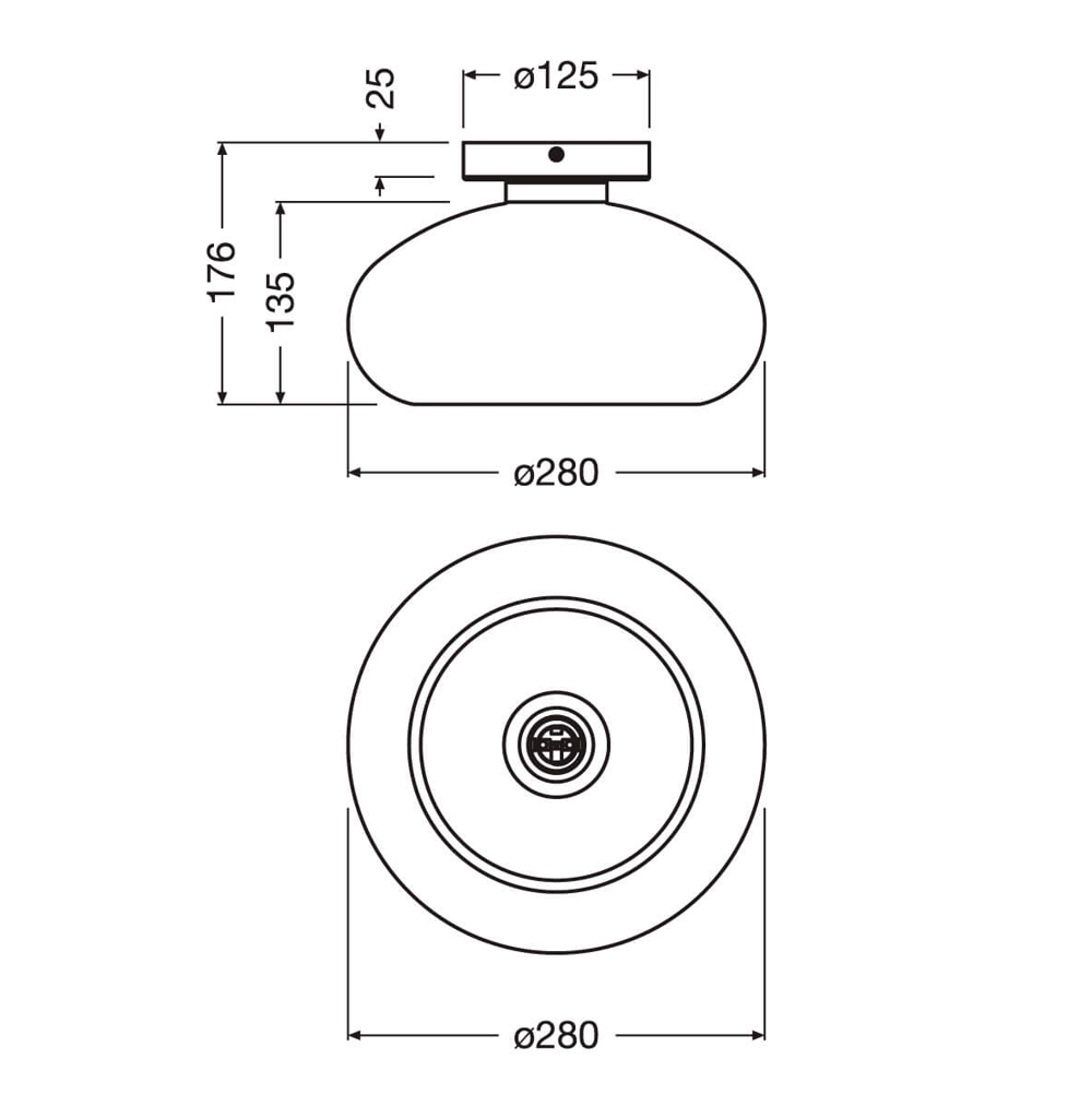 Afmetingen: Ø28 x H17,6 cm, basis Ø12,5 cm