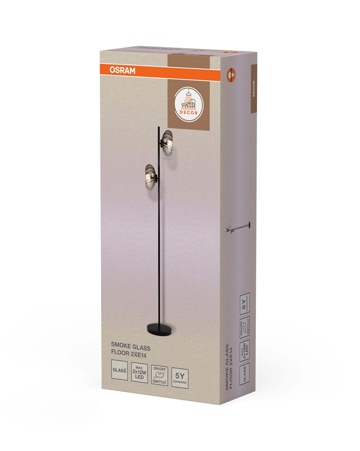 Osram Decor Smoke Glass vloerlamp met rookglas kap en zwarte standaard/basis
