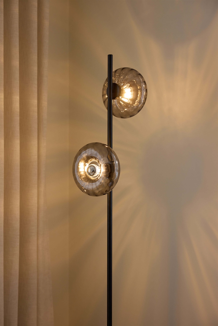 De vloerlamp Decor Smoke Glass combineert elegant modern design met warme en sfeervolle verlichting. Het kenmerkende rookglas van de lamp creëert een zacht en aangenaam licht, wat een exclusieve en uitnodigende uitstraling geeft.