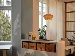 De hanglamp is verkrijgbaar in twee maten, die voordelig gecombineerd kunnen worden met andere lampen in de Decor Stripes-serie om een geheel in het interieur te creëren. De lampenserie is verkrijgbaar in beige of donkergrijs.