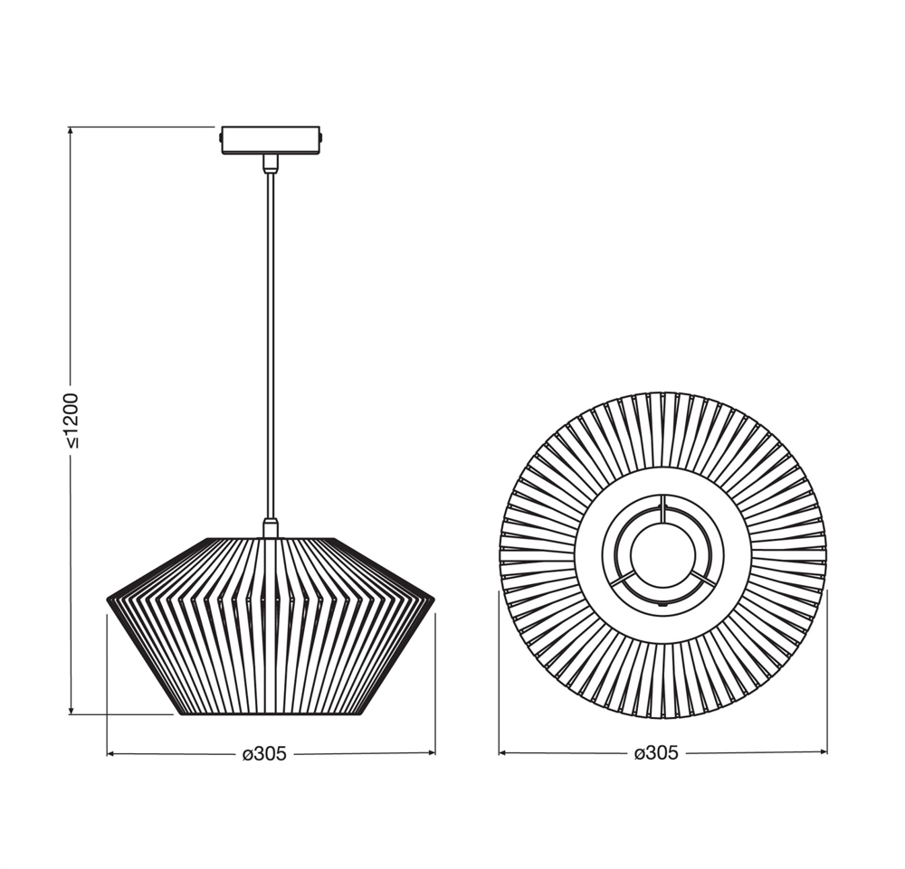 Maximale hoogte vanaf plafond: 120 cm