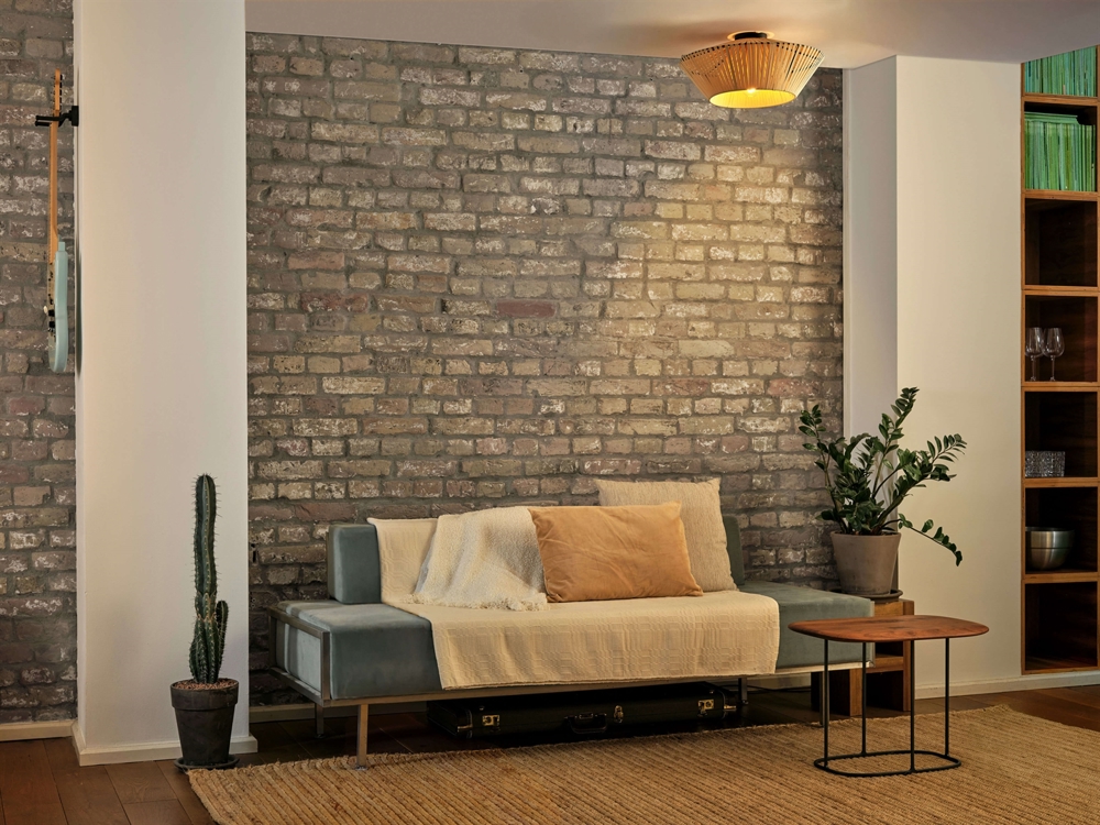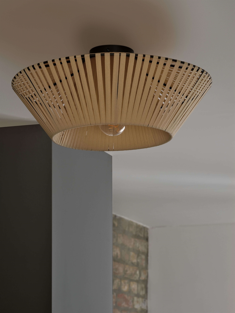 De plafondlamp kan goed gecombineerd worden met andere lampen in de Decor Stripes-serie om een geheel in de inrichting te creëren. De lampenserie is verkrijgbaar in beige of donkergrijs.