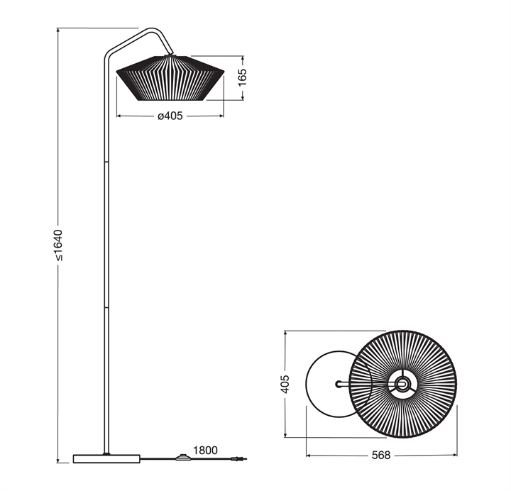 Maten: H164 x D56,8 cm, kap: Ø40,5 x H16,5 cm