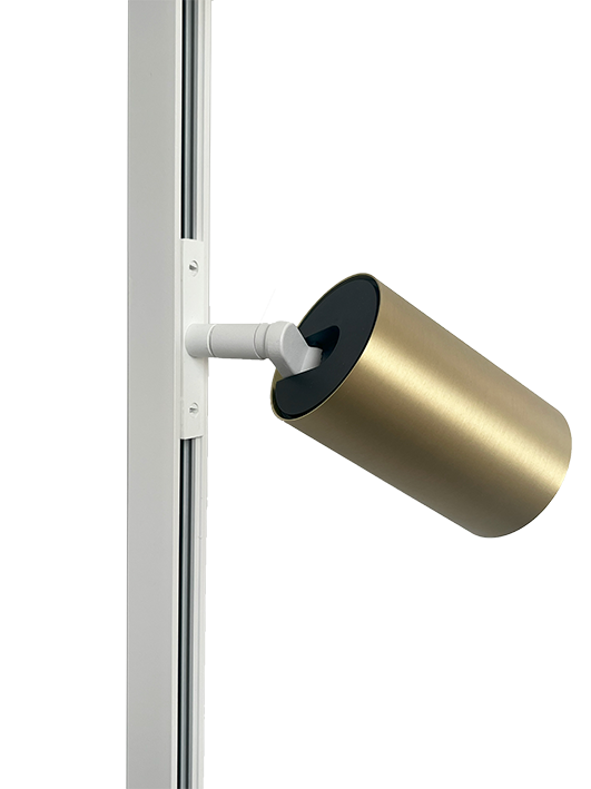 De Tube Pro spot is verkrijgbaar in wit, zwart, messing, titanium, chroom en mat aluminium.