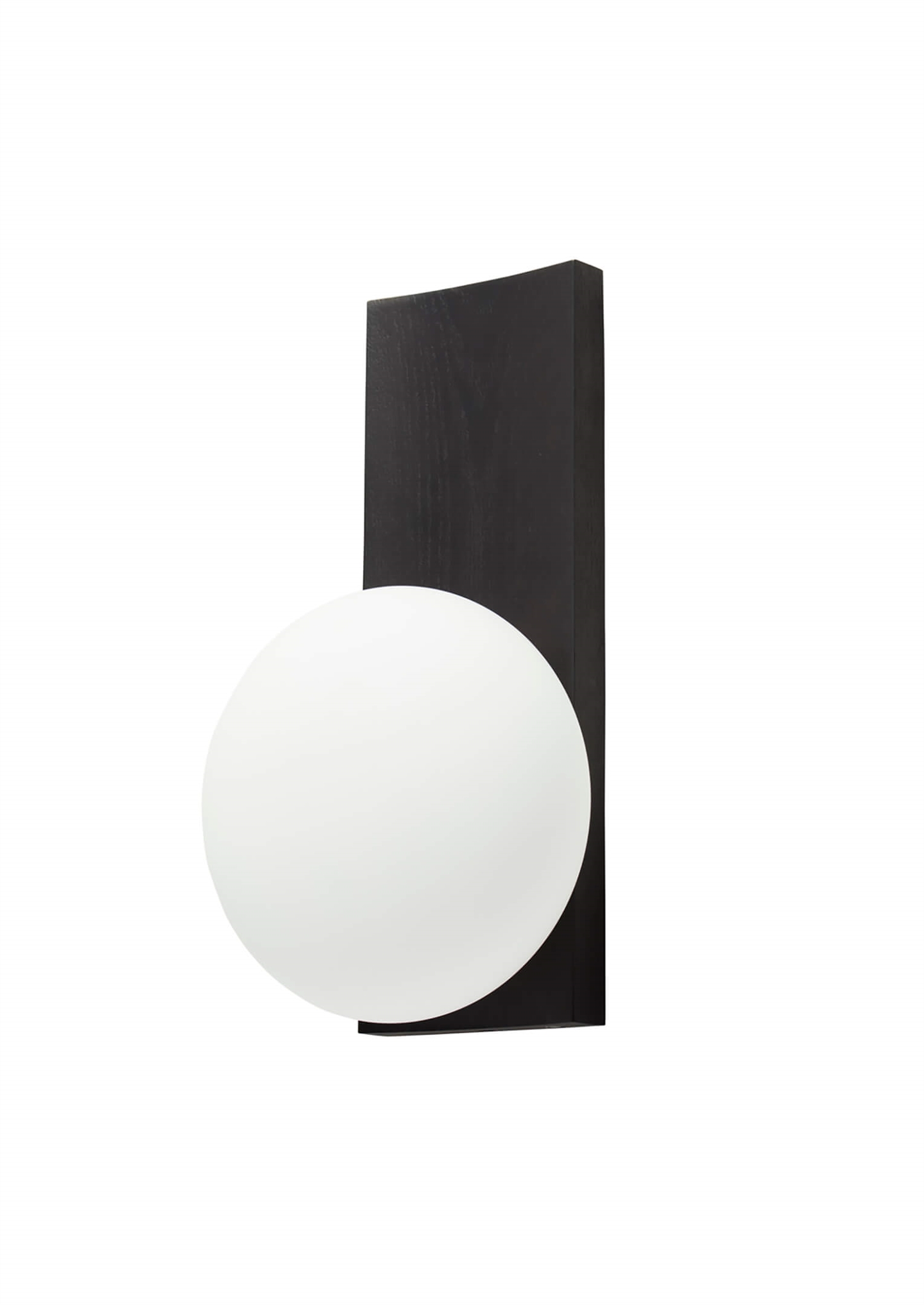 Het ontwerp van de lamp is geïnspireerd op klassieke lantaarns en bestaat uit de opale ronde glazen kap met een basis van zwart geschilderd essenhout.