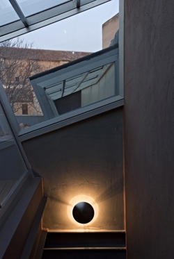 De lamp is ontworpen in nikkel satijn dat in de meeste interieurs past. Wanneer de lamp wordt ingeschakeld, reflecteert deze een warme gloed rondom de schaduw, wat mooie lichteffecten geeft aan hoeken en gangen.