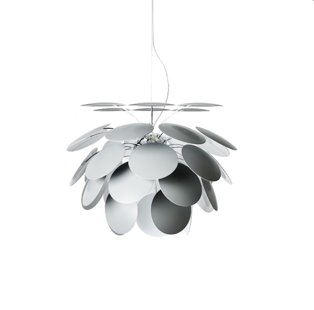 De Discoco hanglamp bestaat uit 35 cirkelschijven van ABS-plastic, die door hun plaatsing de lamp een lichte en elegante uitstraling geven.