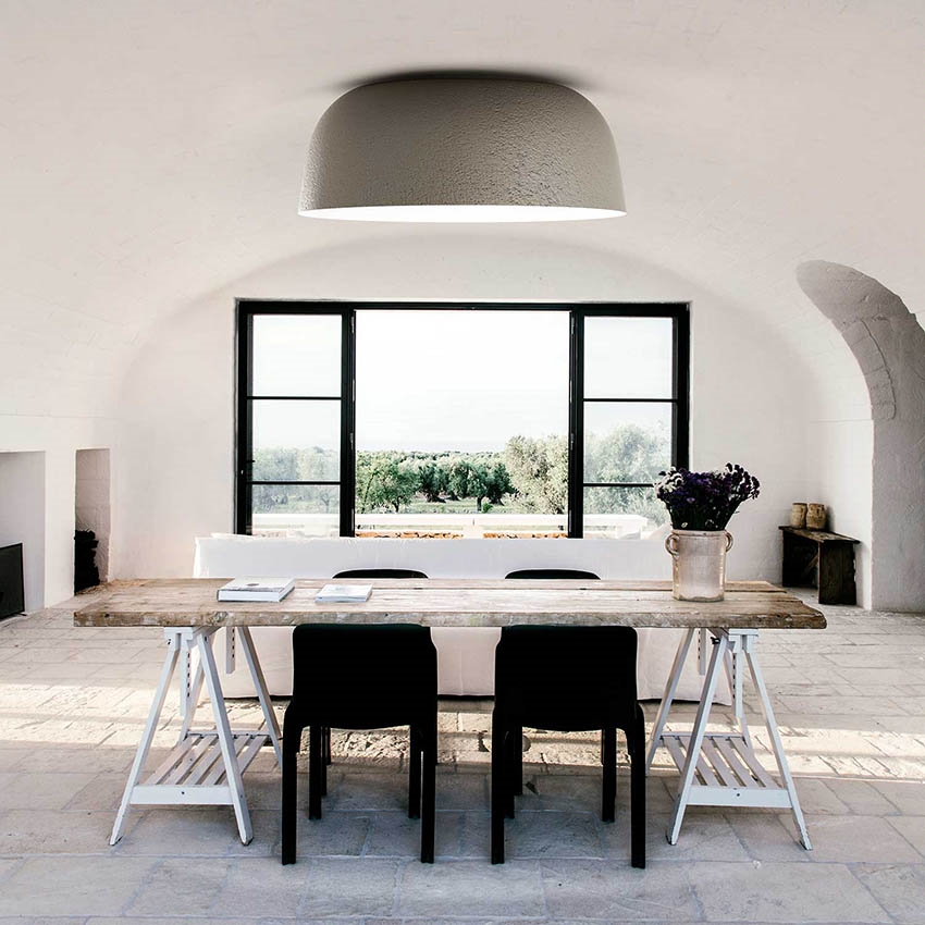 Marset is een moderne plafondlamp met een uniek design. De serie is geproduceerd met behulp van een rotatiegiettechniek, die Gaspar inspireerde om een groot contrast in het ontwerp te creëren.