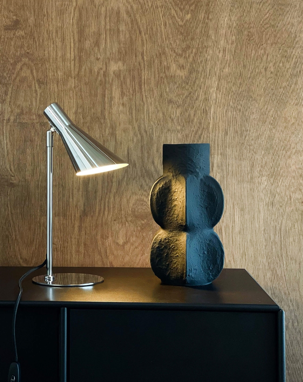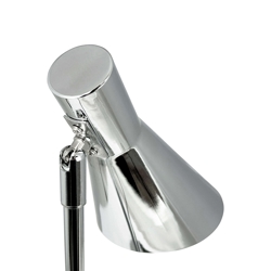 DL12 mini tafellamp heeft een minimalistisch design en zal met zijn strakke en functionele ontwerp in chroom een verfijnde en exclusieve toevoeging zijn aan elke ruimte. De kap kan worden gekanteld en gedraaid in de gewenste richting en de schakelaar is praktisch geplaatst op het snoer. Net als de rest van de DL-lampen past de mini tafellamp in veel stijlen. Met zijn kleine formaat is hij perfect voor de plank, vensterbank of nachtkastje.