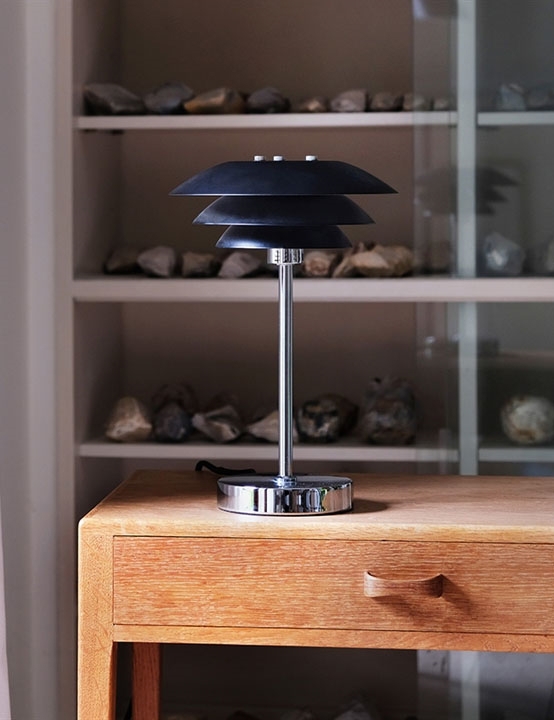 DL20 tafellamp is een klassieker van Dyberg Larsen. De tafellamp heeft een fantastisch design met de unieke 3-laags kappen, die het licht op een gedempte en mooie manier naar beneden richten.